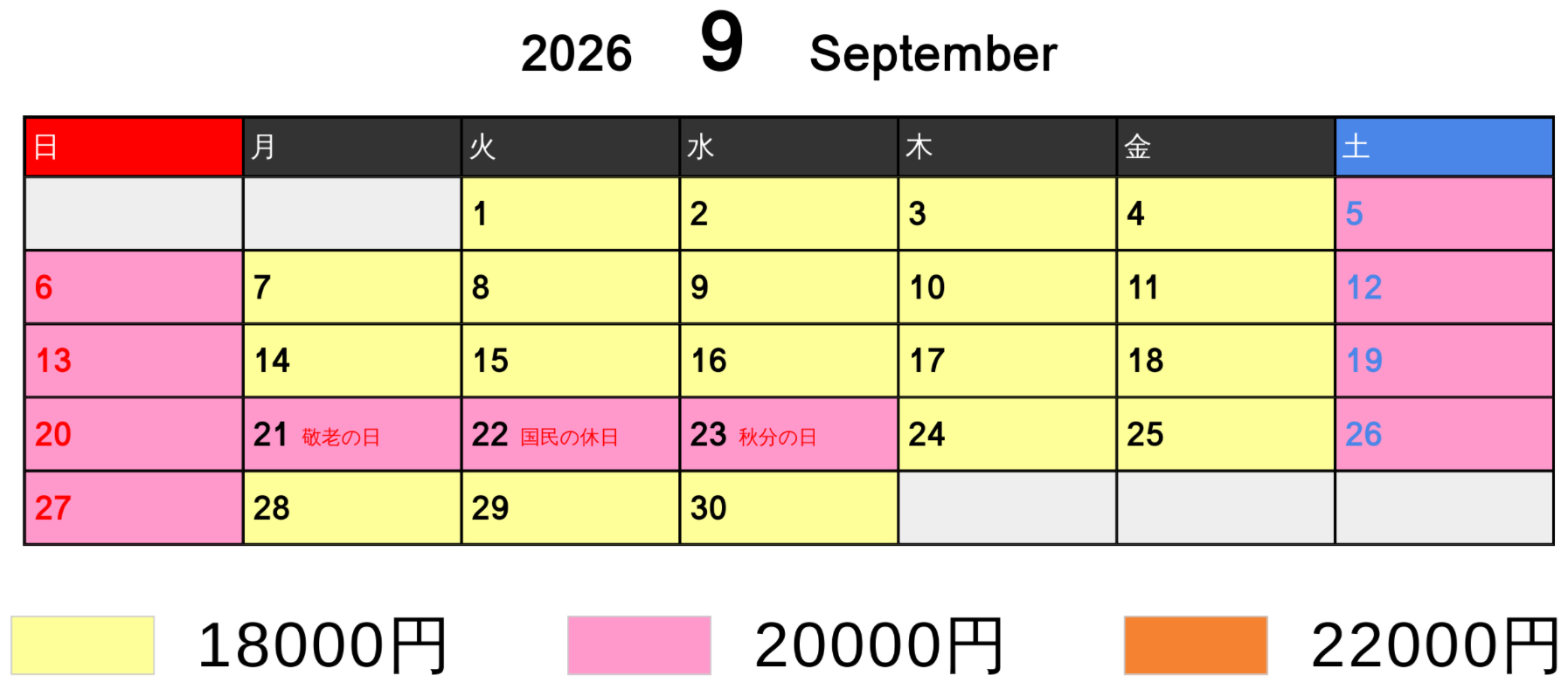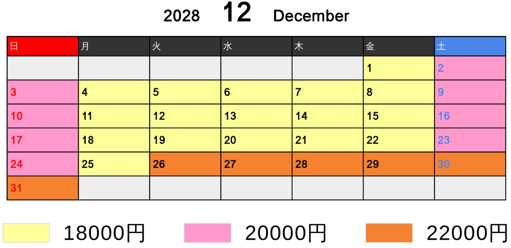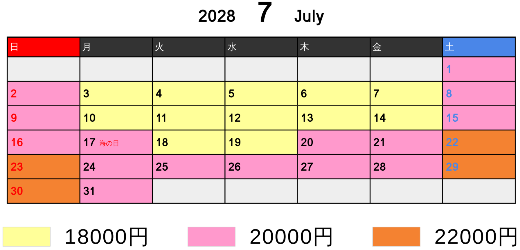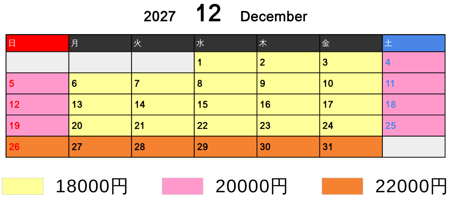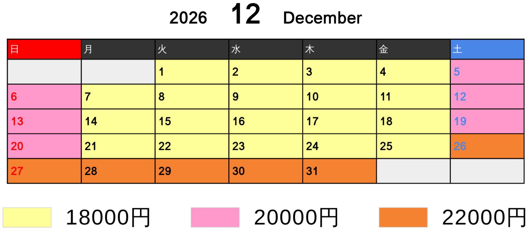 料金カレンダー