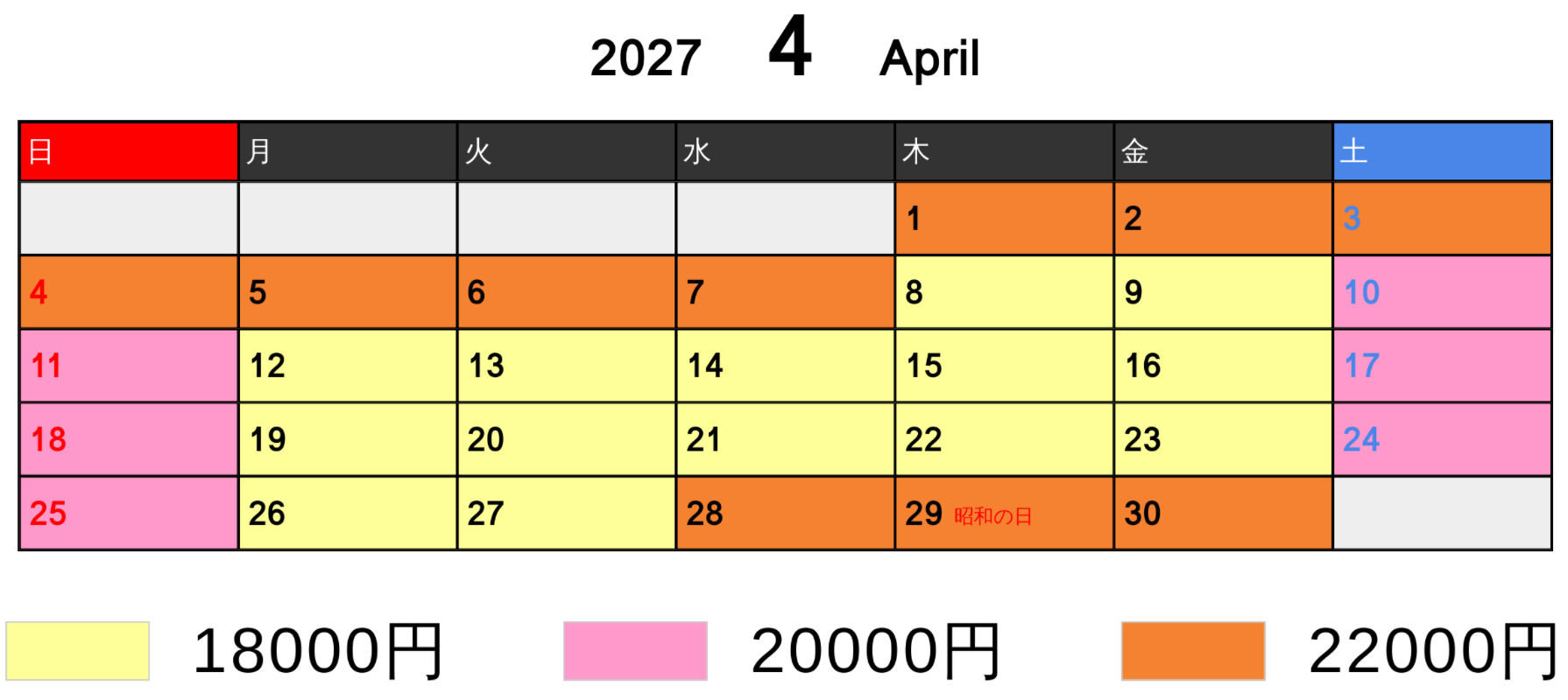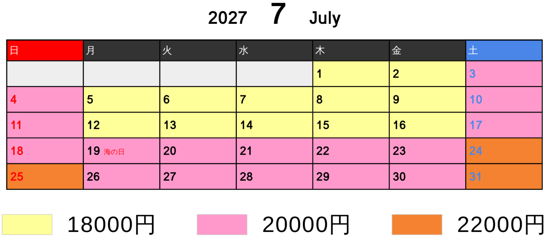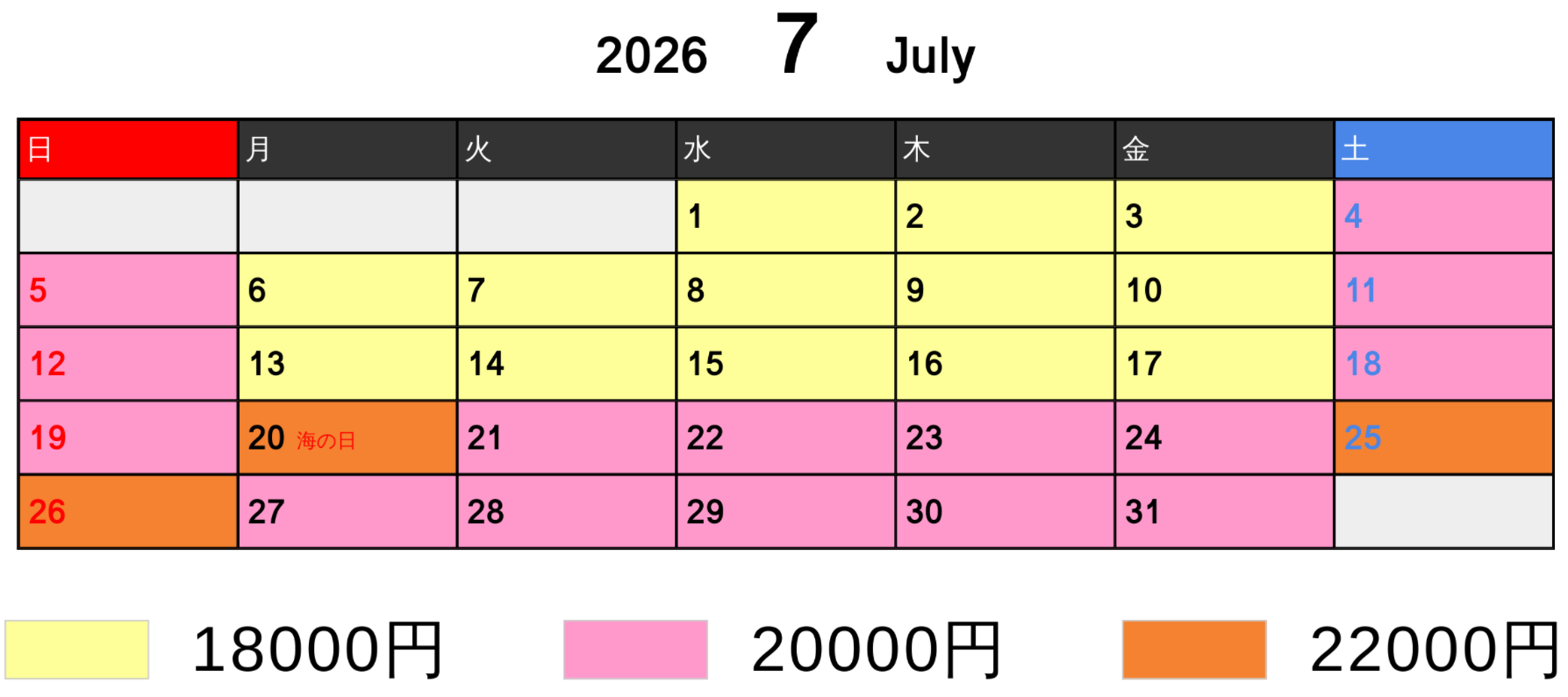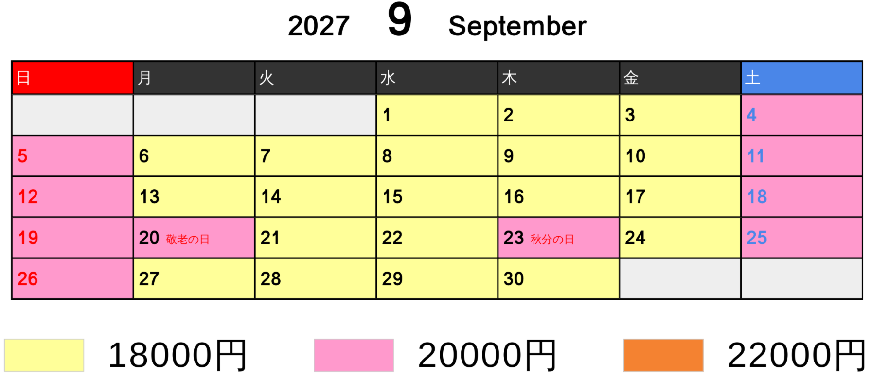 料金カレンダー