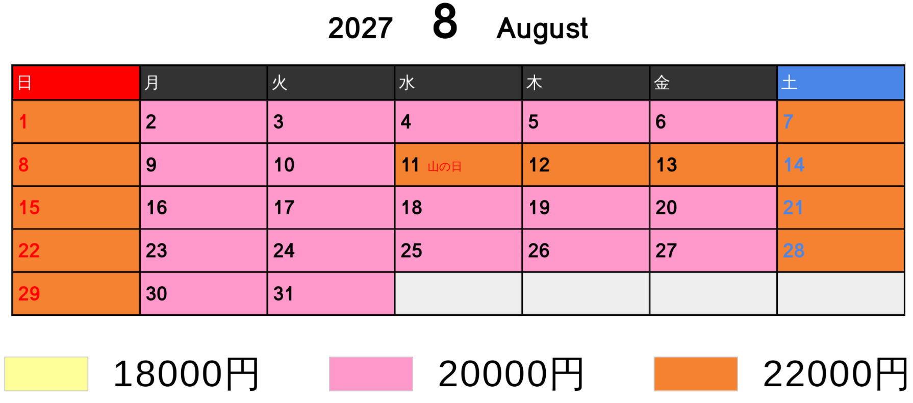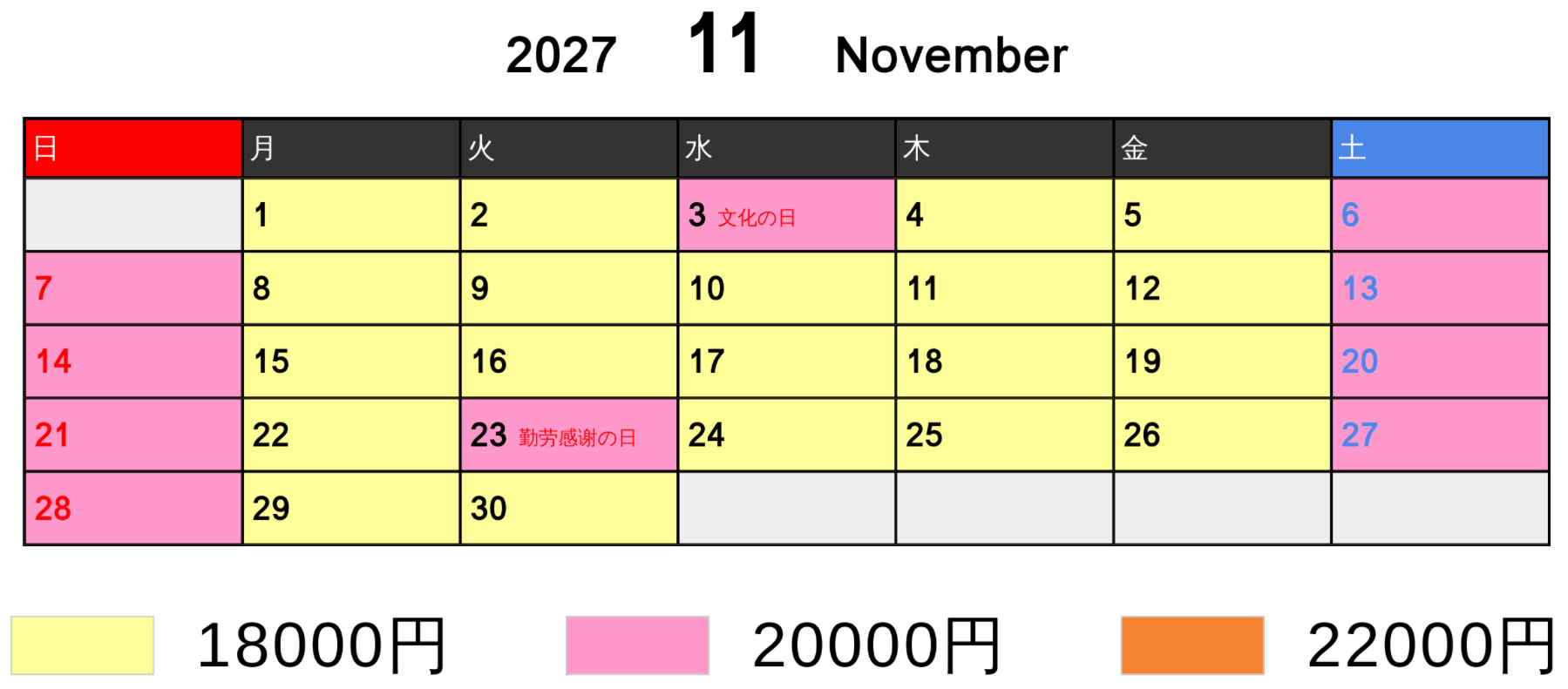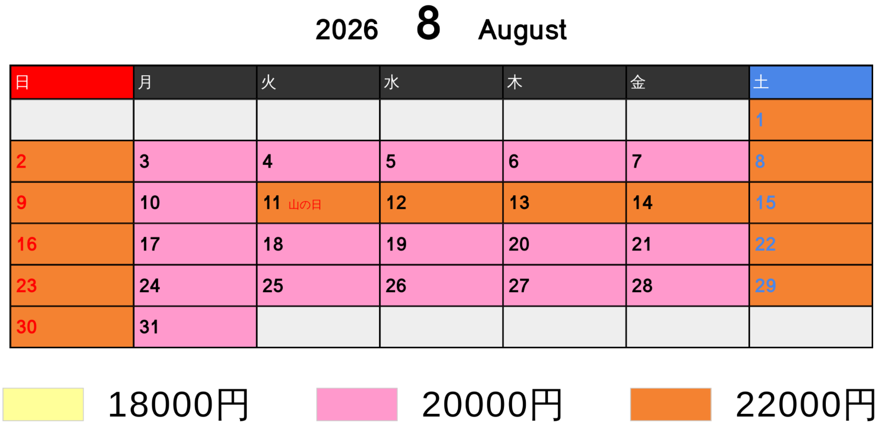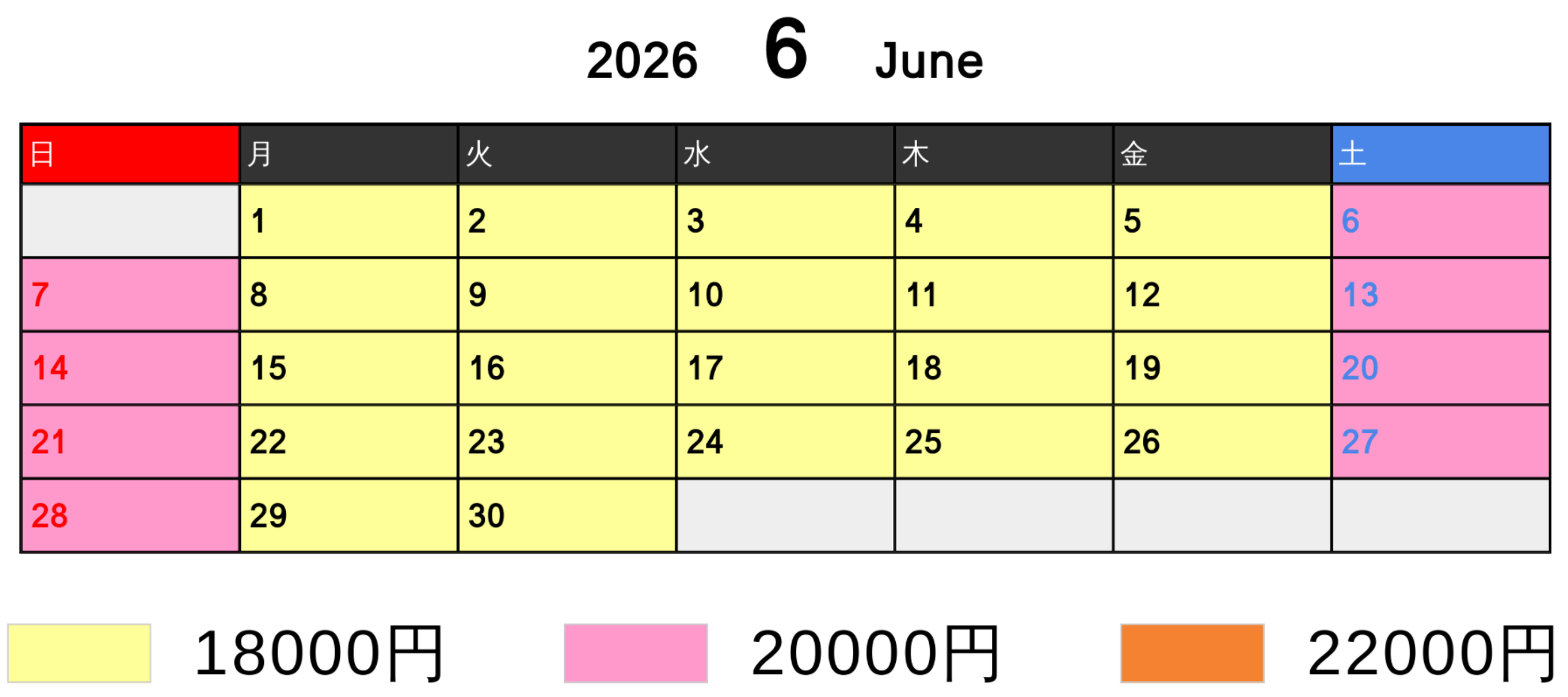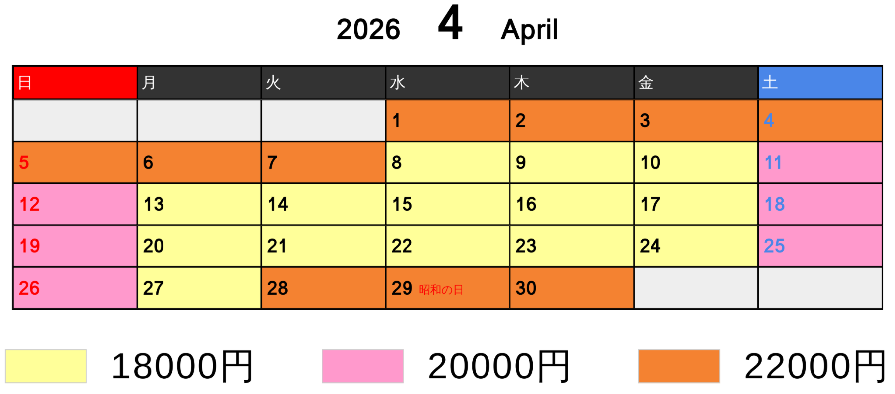 料金カレンダー