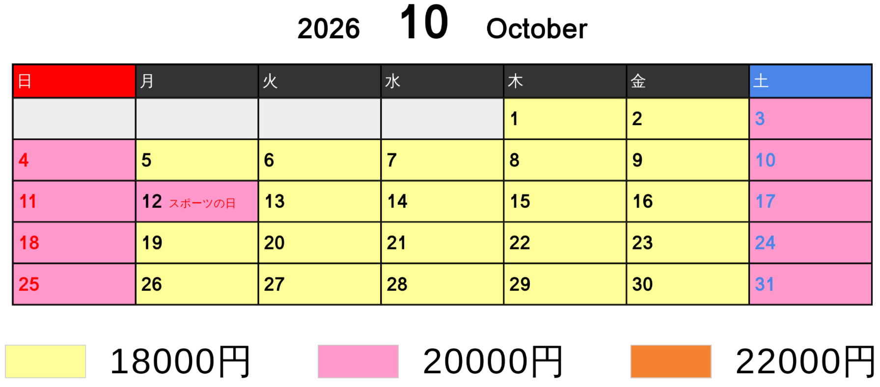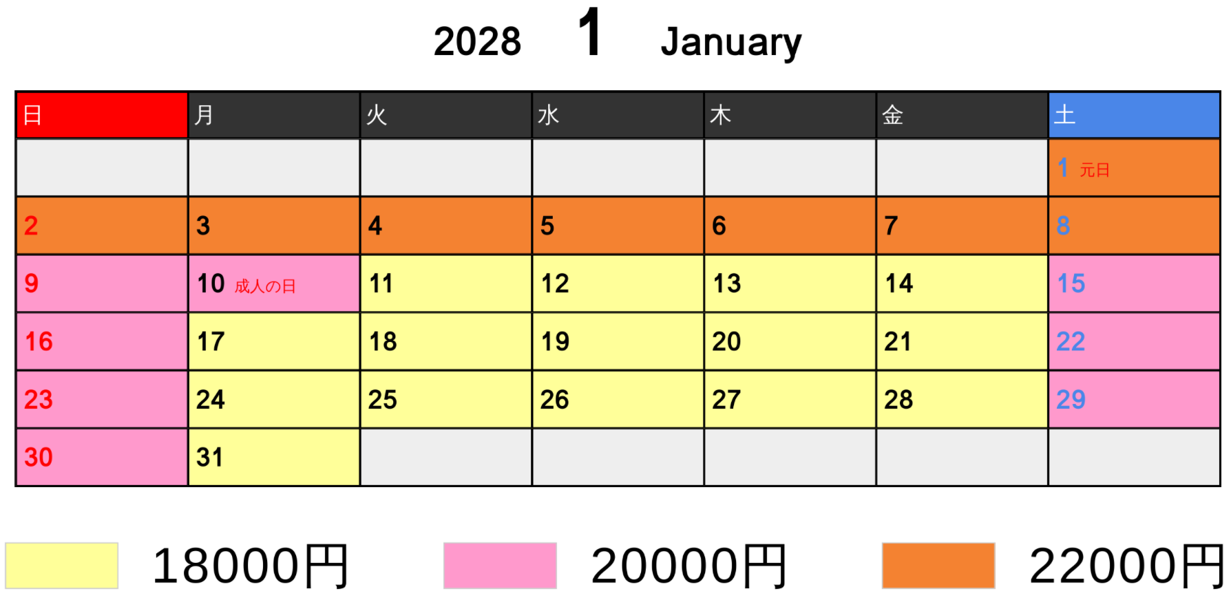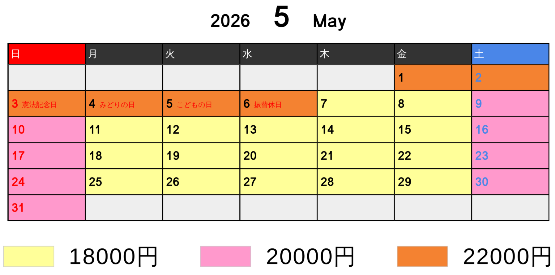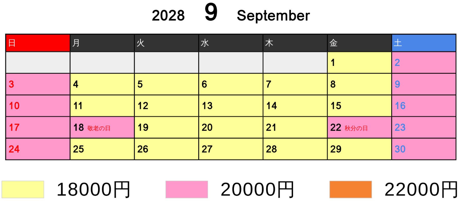 料金カレンダー