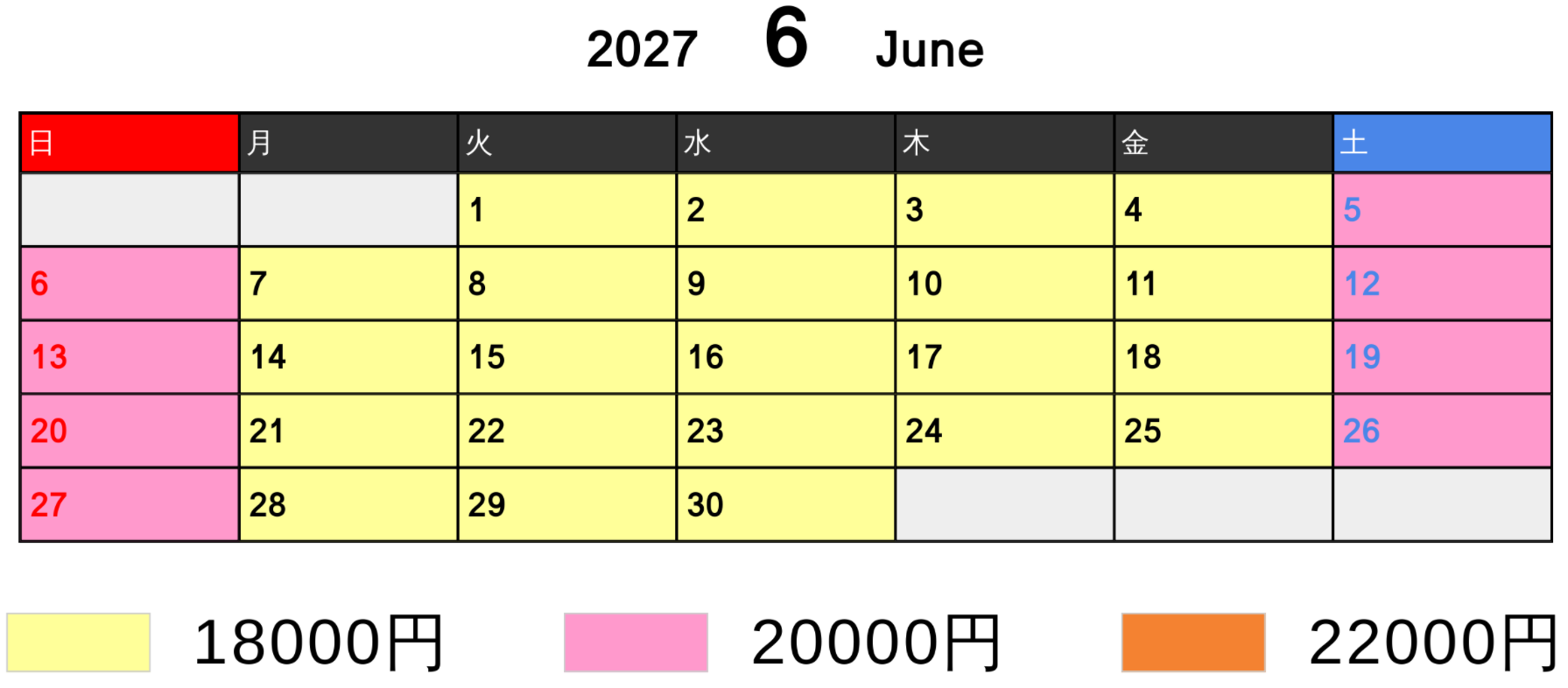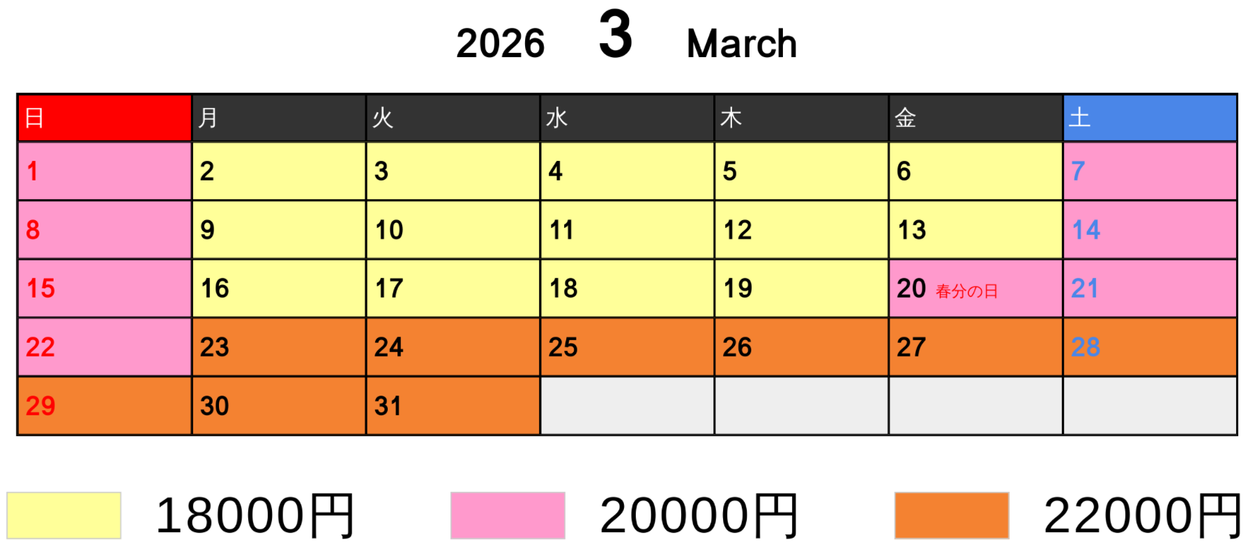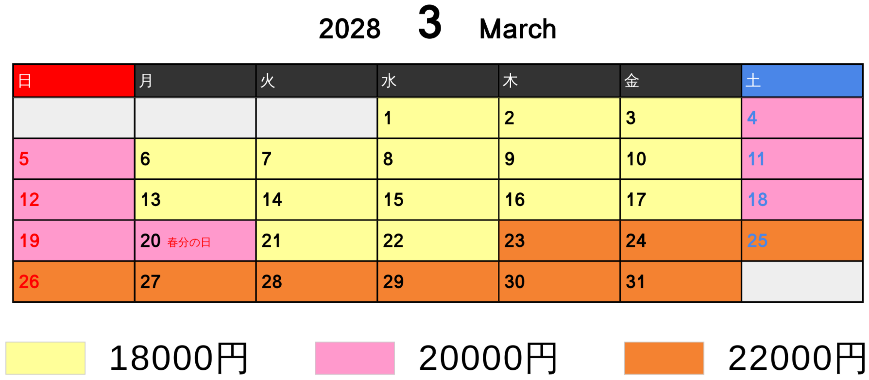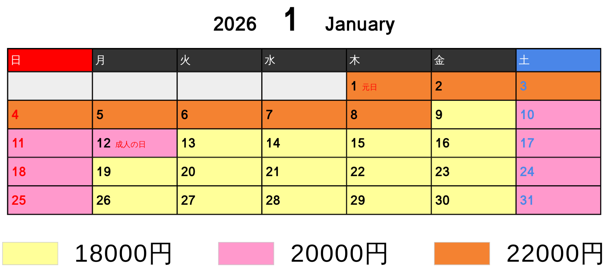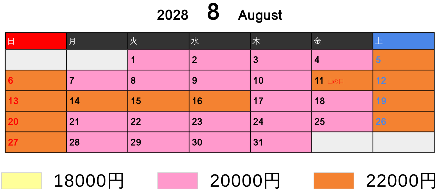料金カレンダー