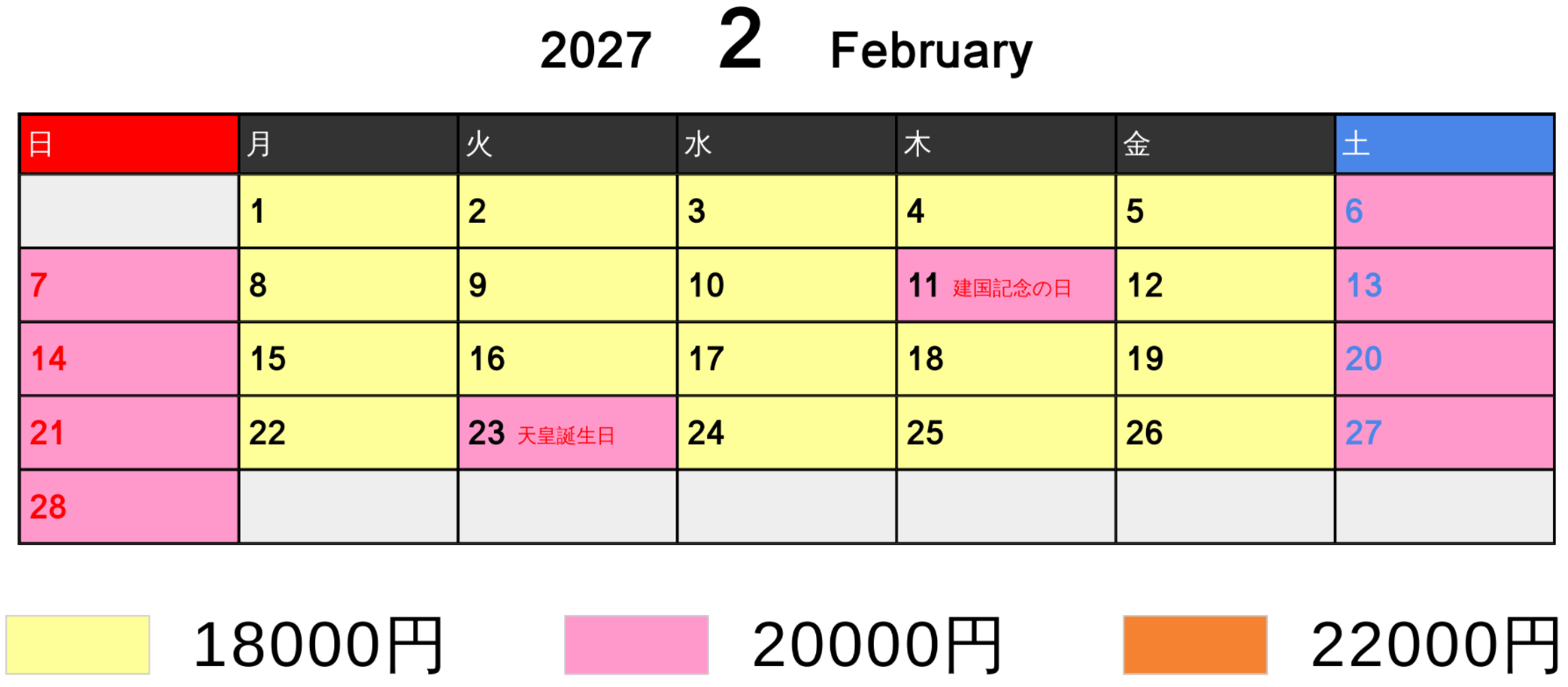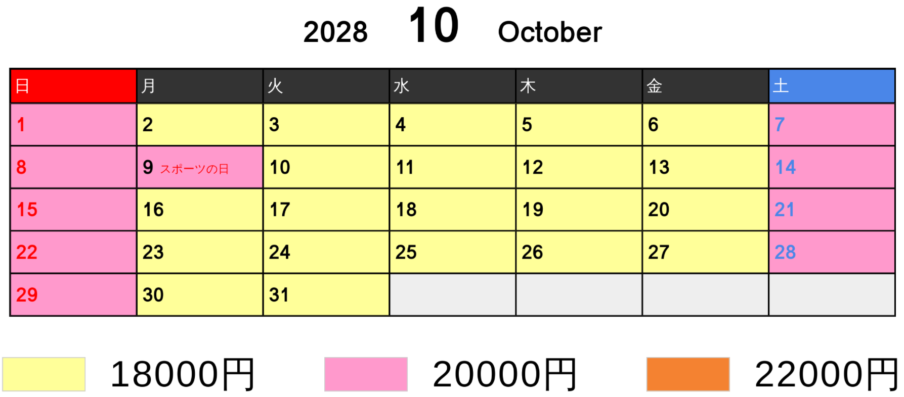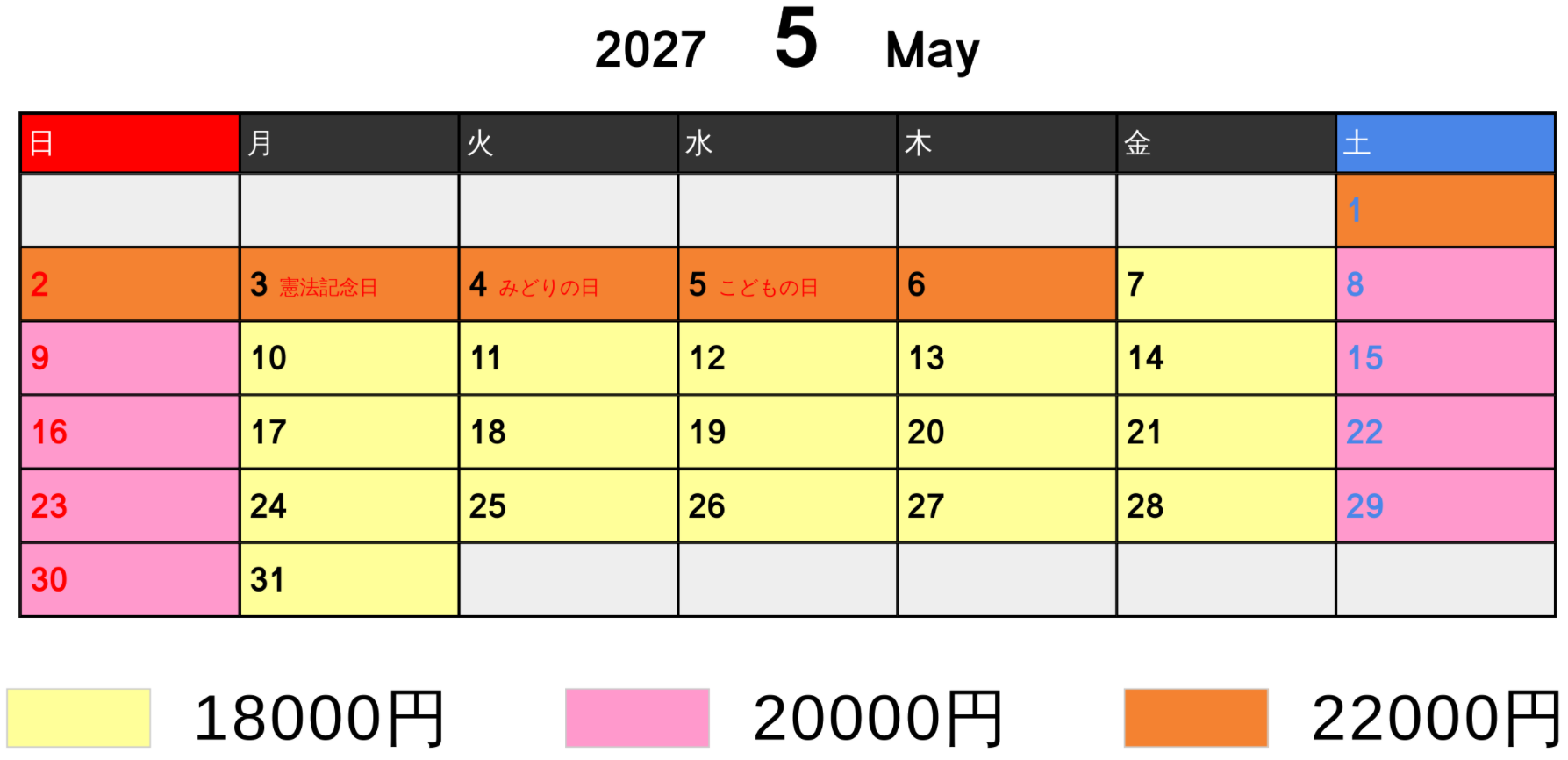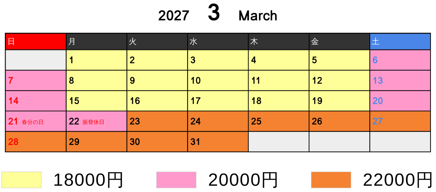 料金カレンダー