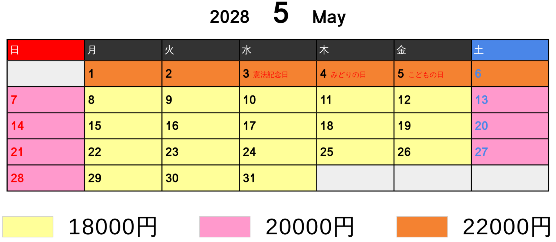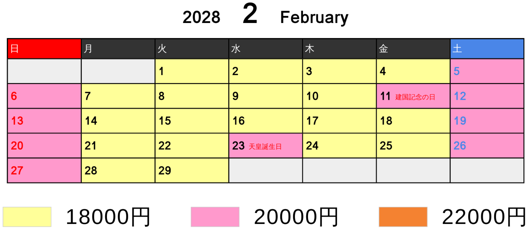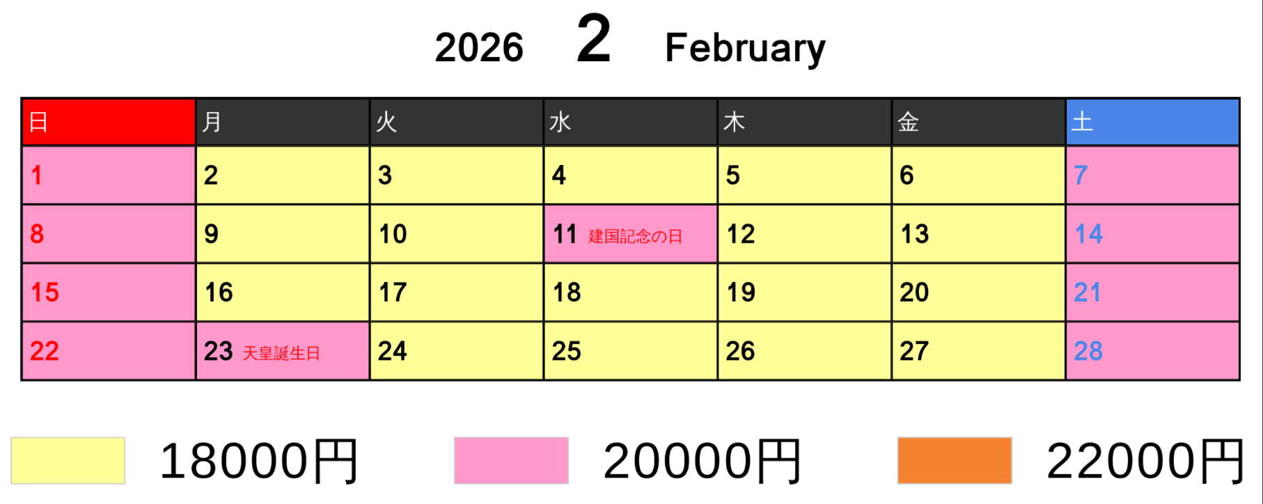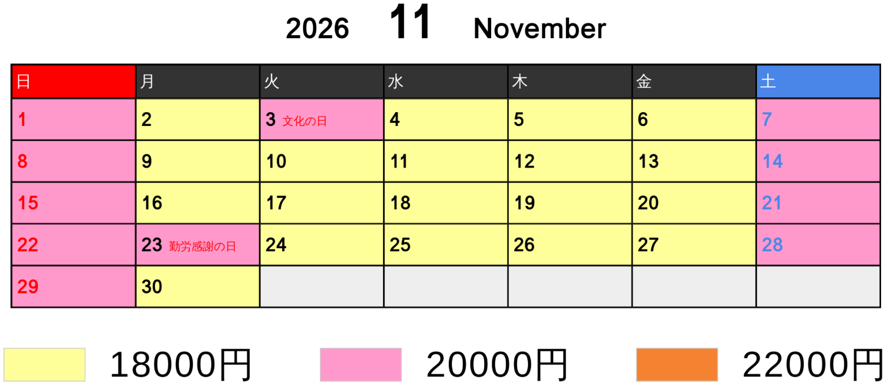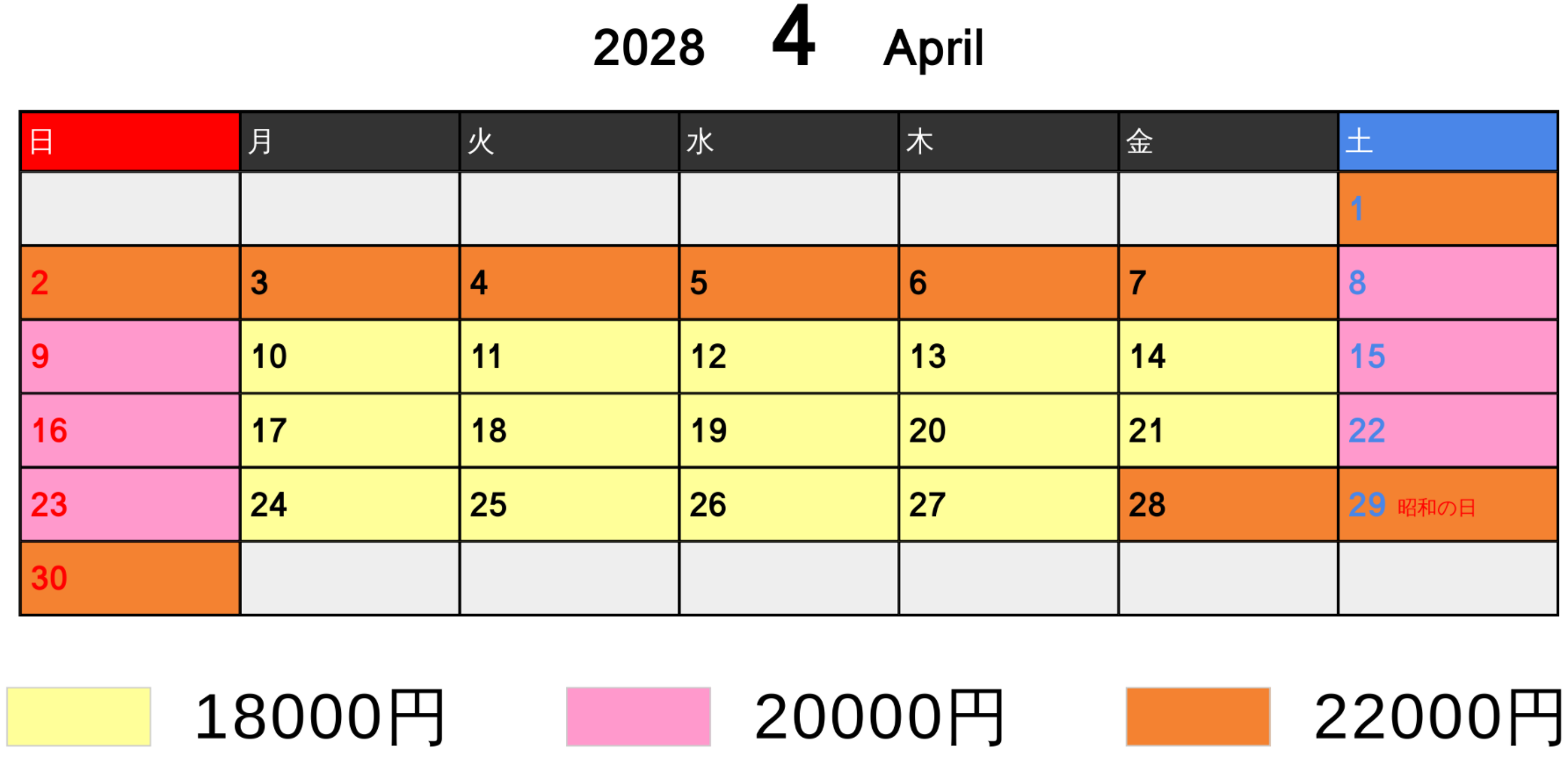 料金カレンダー