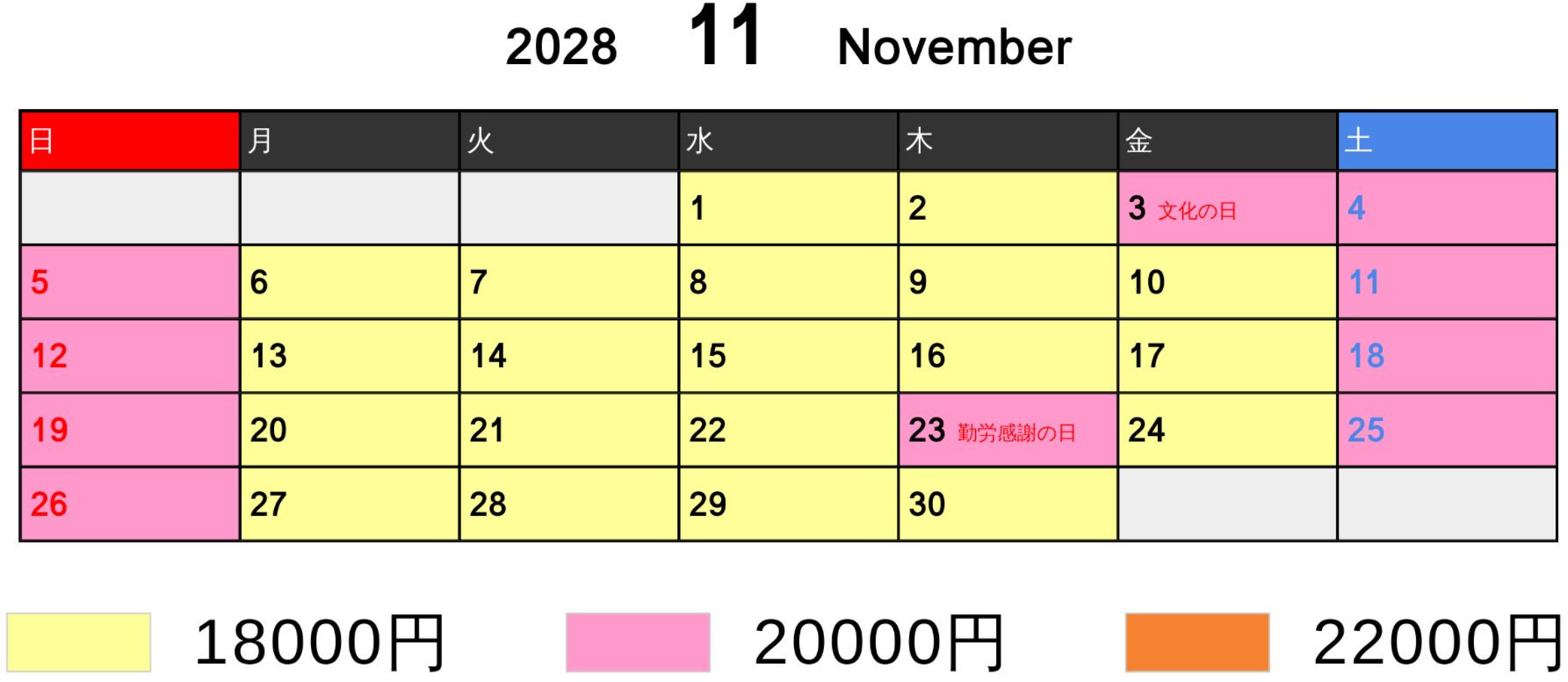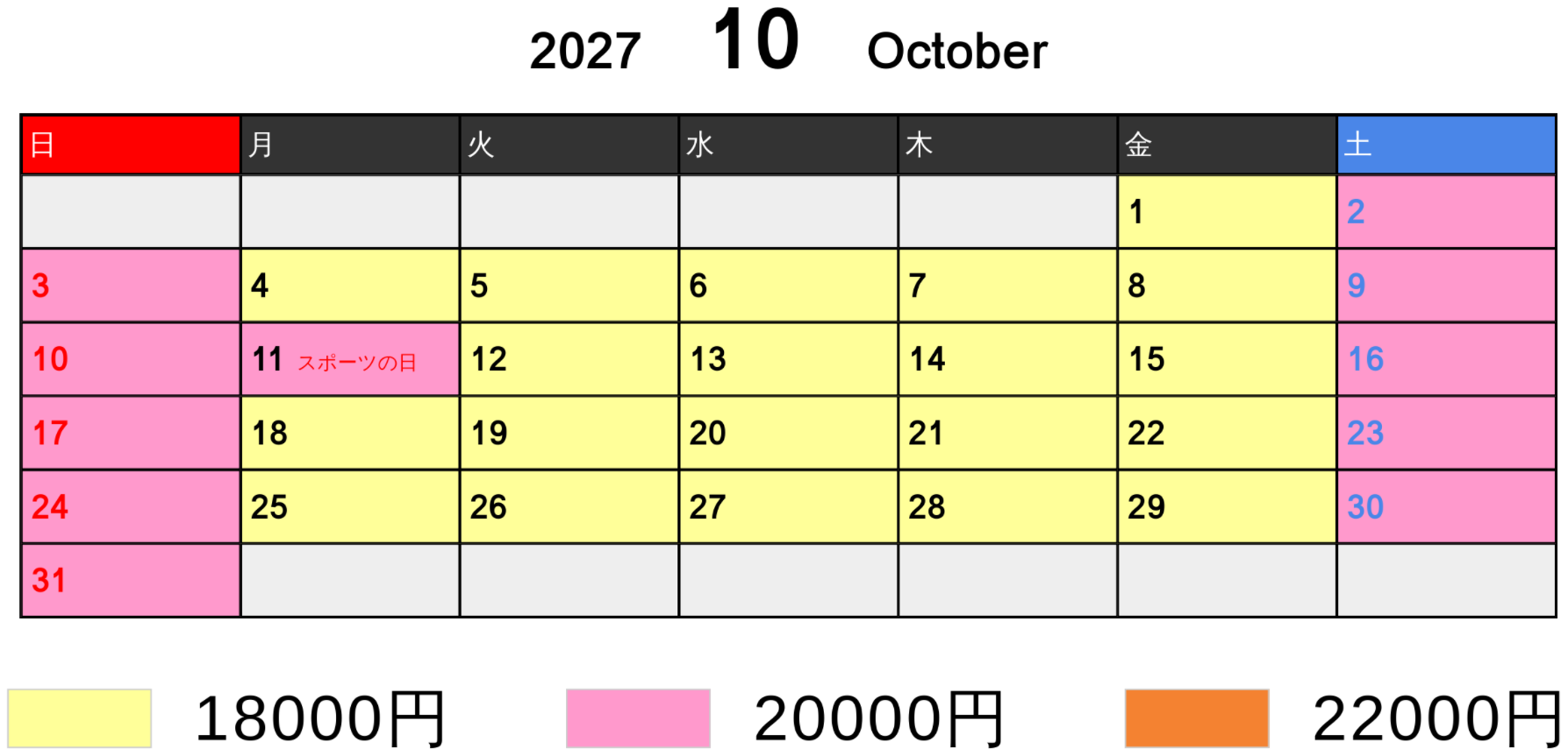 料金カレンダー